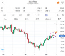 摘要:虽然美7月CPI通胀数据低于预期,导致市场弥漫美联储升息放缓的情绪,黄金得利,但在美核心CPI终止缓步降温下,美联储升息压力未减,黄金存隐忧。 【现货黄金】 周三黄金冲高回弱,终场收跌,最高来到1807.96美元/盎司,最低来到1787.67美元/盎司,下跌0.11%,收17
