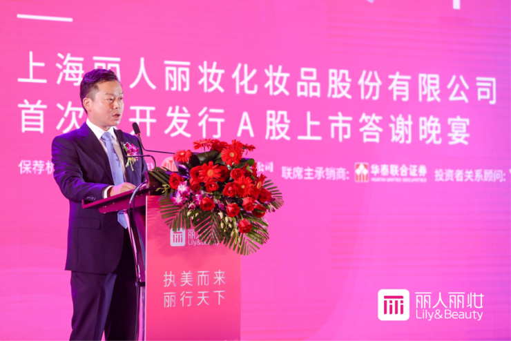 上海市松江区永丰街道党工委副书记、办事处主任何劲峰莅临答谢晚宴,对丽人丽妆成功上市表示热烈祝贺,何主任表示,丽人丽妆顺应时代需求不断创新、变革,业务取得快速发展。松江区需要更多像丽人丽妆这样的优秀企业,相信丽人丽妆的成功上市,将进一步为松江区的经济发展注入更多动力,为众多松江企业作出良好的示范。