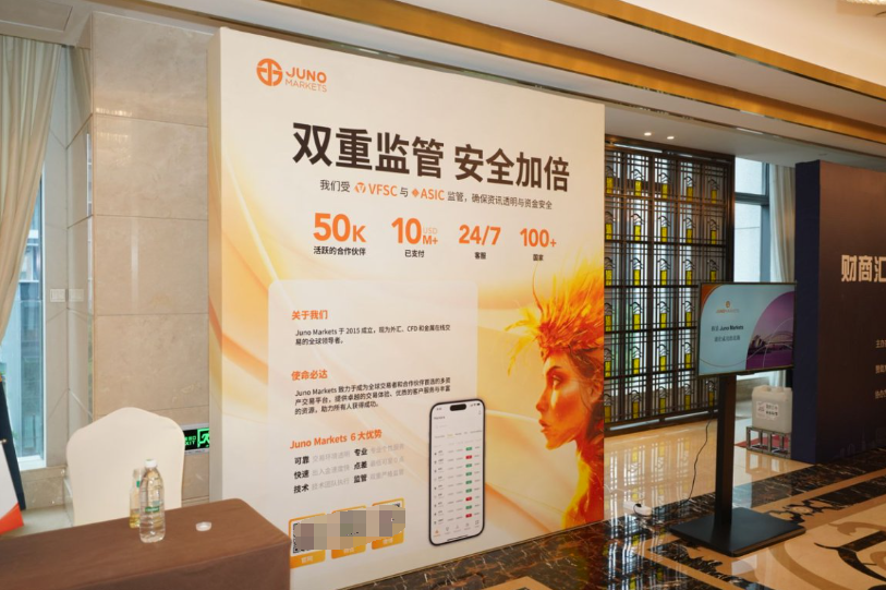 作为全球领先的金融服务品牌,JUNO MARKETS以 “成为最值得信赖的金融合作伙伴” 为核心愿景,深度融入活动全程。活动开场,JUNO MARKETS代表以 “技术驱动交易革新” 为主题发表演讲,重点介绍其依托人工智能与自主研发的交易生态 —— 包括低点差透明交易环境、多资产覆盖的 STP/ECN 账户模式,以及受双重监管的资金安全保障体系。现场设置的JUNO MARKETS品牌展区,更以互动屏展示 MT4/MT5 平台的实时交易数据,吸引参会者驻足咨询,直观感受 “0 点差起”“极速出入金” 等核心优势。
