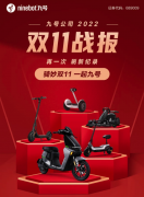 今年的双11大战自11月1日起至11日24:00终于收官,各大主流电商平台各品类头部企业销售榜单也陆续出炉。九号公司,作为新一代智能短交通创新品牌企业,双11首战告捷,成绩喜人! 11月12日,据双十一战报发布,九号公司销售总额破3.99亿,同比增长90%,明星产